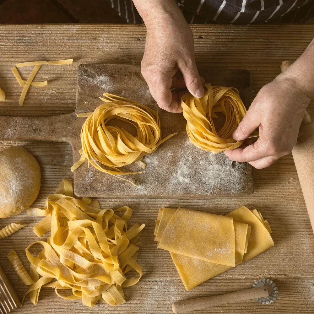 During this hands-on cooking class in the heart of Pisa, guests will learn how to prepare two types of fresh handmade pasta and two traditional Italian sauces, guided step by step by our chef. This is a practical experience where participants actively cook, not just watch.