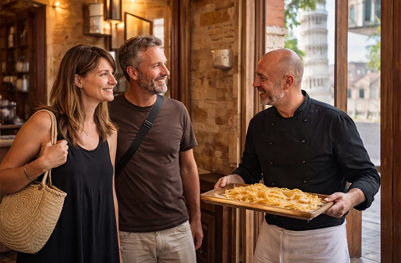 We meet in the historic centre of Pisa, just steps from the city’s main attractions. You’ll be welcomed into a warm, authentic kitchen space where tradition comes to life.